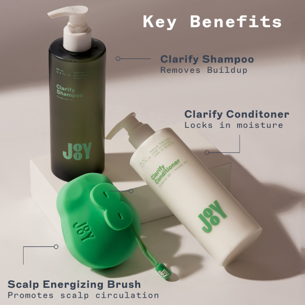 Nourish, clarify, and restore balance to your scalp with our original Clarify Shampoo and Conditioner. The Scalp Energizing Brush boosts the benefits of our Fermented Superfood formulas while promoting relaxation and stimulating blood flow to your hair follicles.
